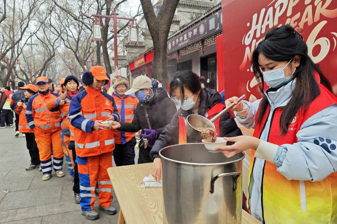 值得一提的是,活动特设的“腊八粥派送点”前暖意融融,工作人员将精心熬制的腊八粥分装成碗,免费赠予到场的环卫工与市民、游客,一碗碗热粥,不仅传递着腊八节的民俗温情,更让年货节的民生温度直抵人心。