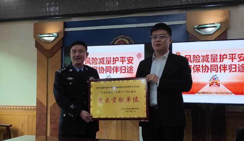 会上,汉中市公安局交通管理支队正式授予平安产险汉中中支“平安红绿灯道路安全风险减量突出贡献单位”称号,表彰其在道路安全治理中的示范作用。
