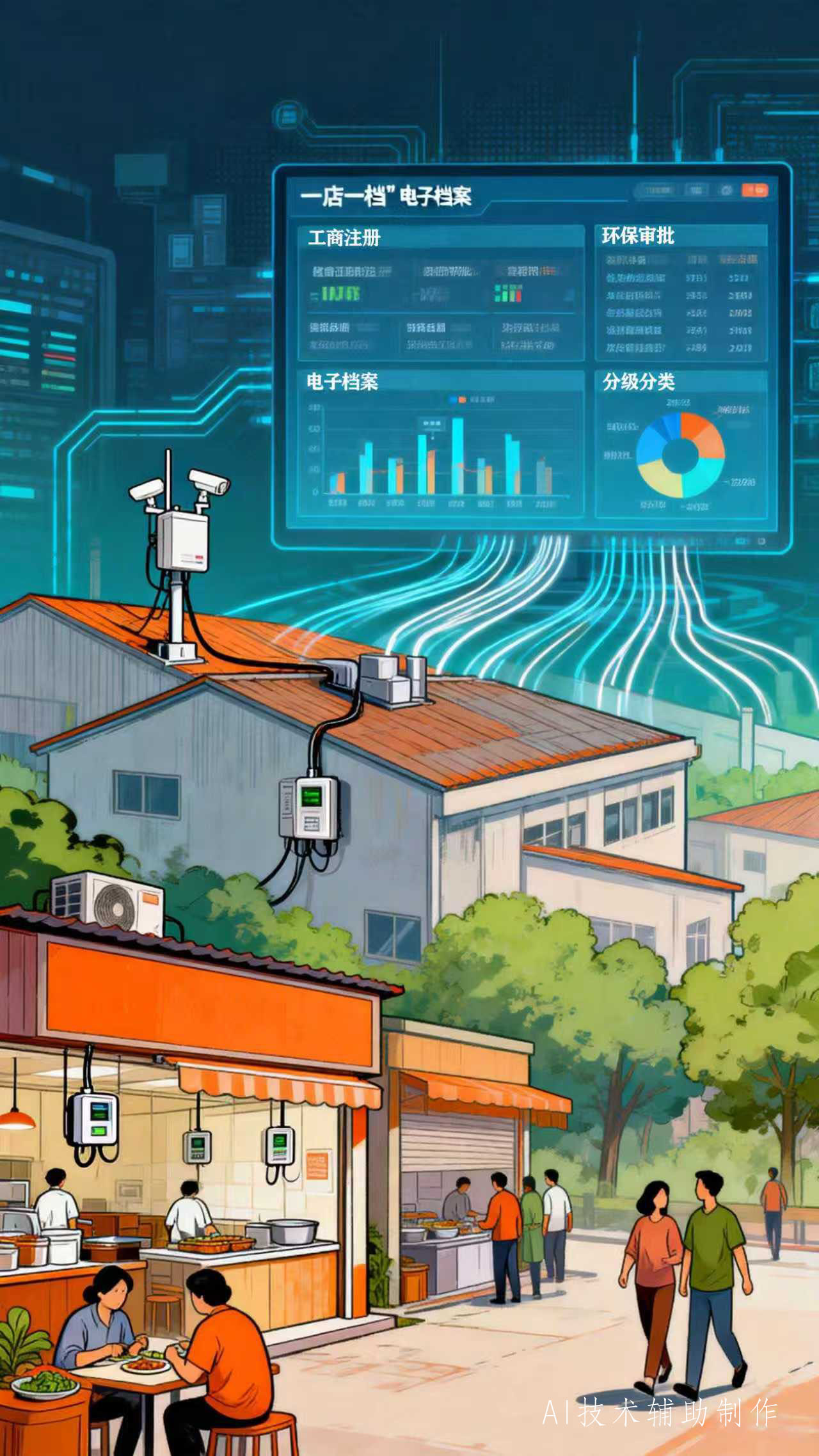餐饮油烟,事关大气环境质量和市民健康。如何提升精准治污能力?王伟认为,应推行分级在线监测与闭环管理,在中型及以上餐饮单位、重点餐饮集中区安装在线监测设备,对小型餐饮推广电量监测方案。同时,深化“一店一档”与数据应用,整合工商注册、环保审批等信息,建立电子档案并实施分级分类监管。