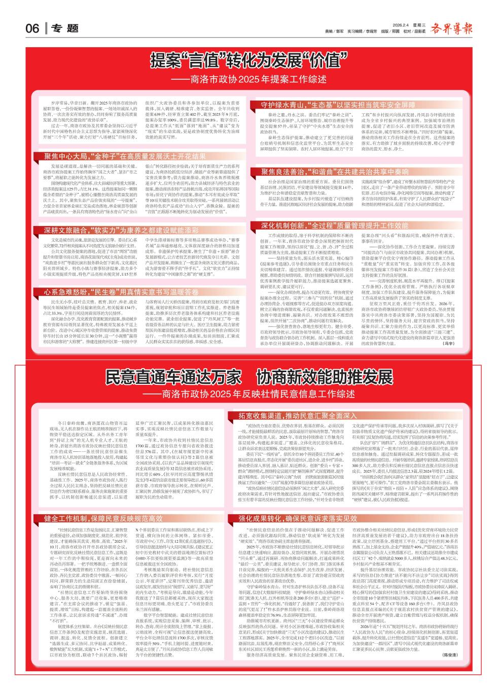 2026年是“十五五”规划开局之年。商洛市政协将始终践行“人民政协为人民”的初心使命,持续深化机制创新,拓宽渠道载体,提升转化效能,让社情民意信息“直通车”更通畅、更高效,为加快建设“一都四区”、谱写中国式现代化建设的商洛新篇章汇聚更多民心民智、贡献更强政协力量。