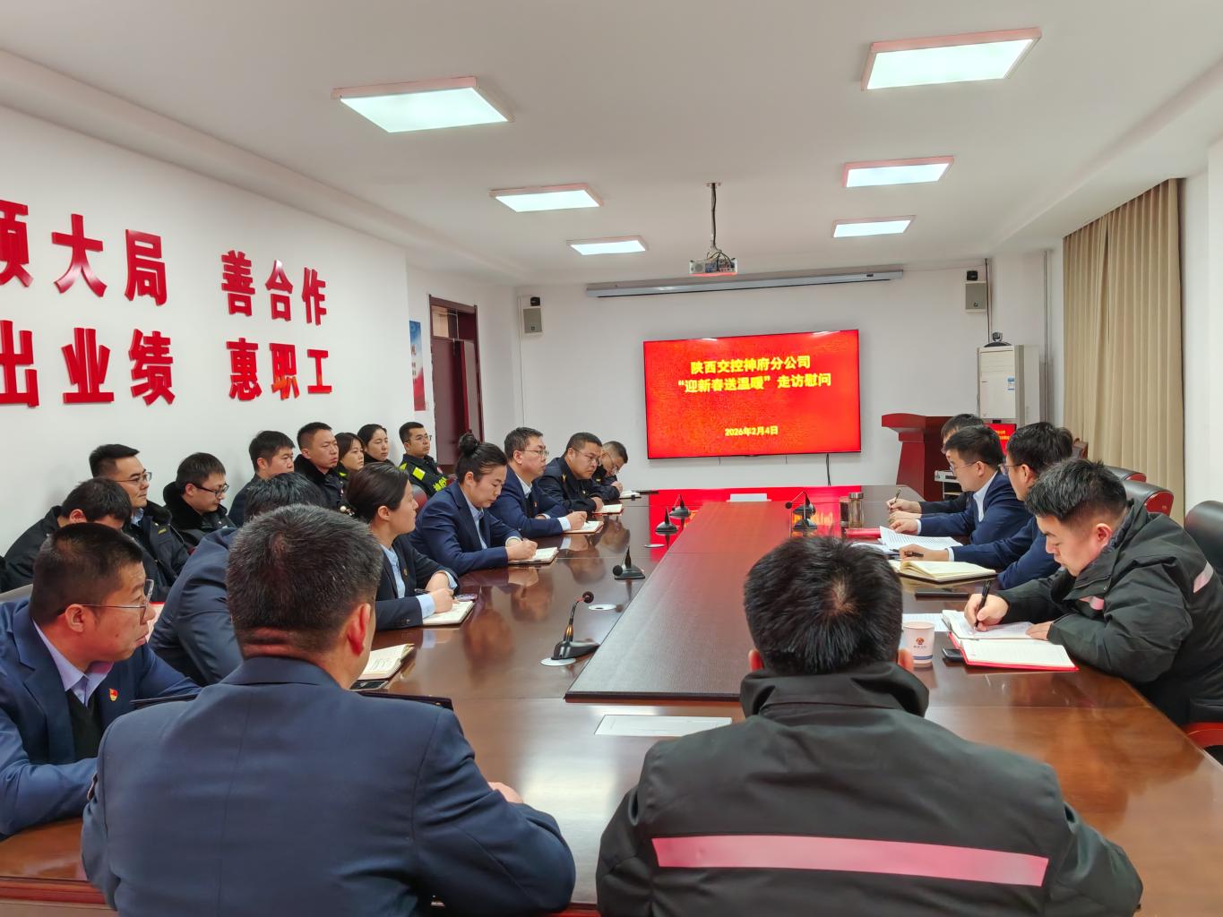 本次慰问活动由神府分公司领导班子成员、相关部室负责人组成2个慰问组,深入所属路产养护管理中心、收费站及监控分中心一线,与坚守岗位职工亲切交谈,详细询问了大家的工作生活情况、节日保障安排及实际需求,听取了职工对企业发展的意见建议,叮嘱大家做好冬季安全防护和防寒保暖,合理安排作息,以饱满状态筑牢节日安全防线。