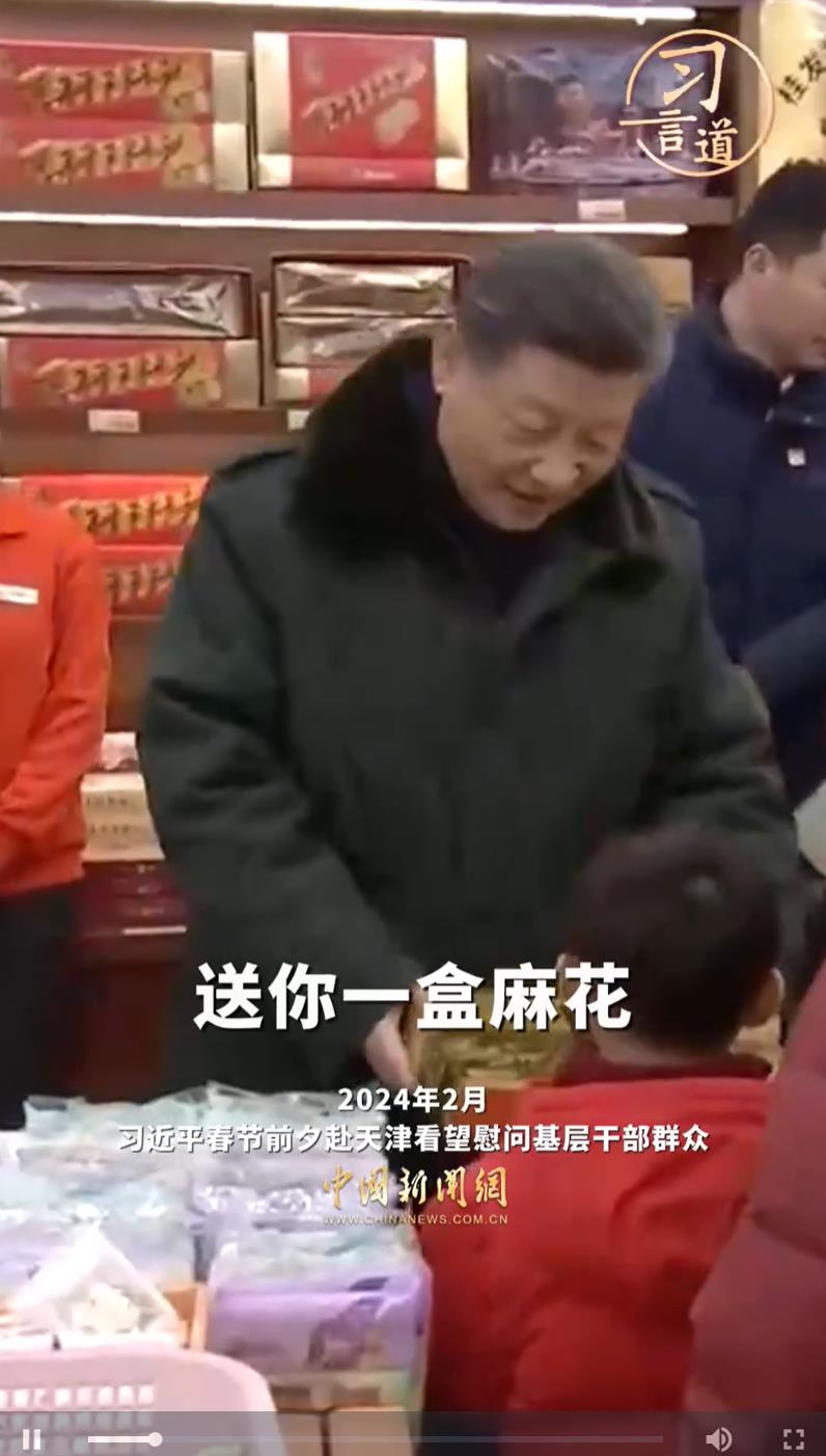 每逢春节前夕,总书记都会走到基层、百姓中间。在天津古文化街,总书记掏钱买麻花作为见面礼,送给身旁的小朋友,说“送你一份麻花”;在辽宁,总书记接下孩子们递来的糖果,亲切地说,你们的糖我收下,吃了你们的糖心里很甜。一个个亲切有爱的感人画面,充满了温情,传递着感动。