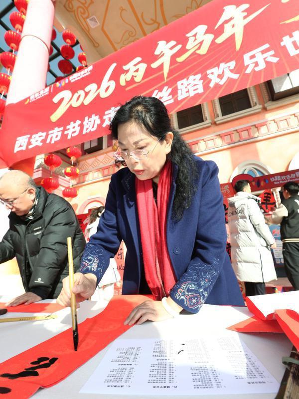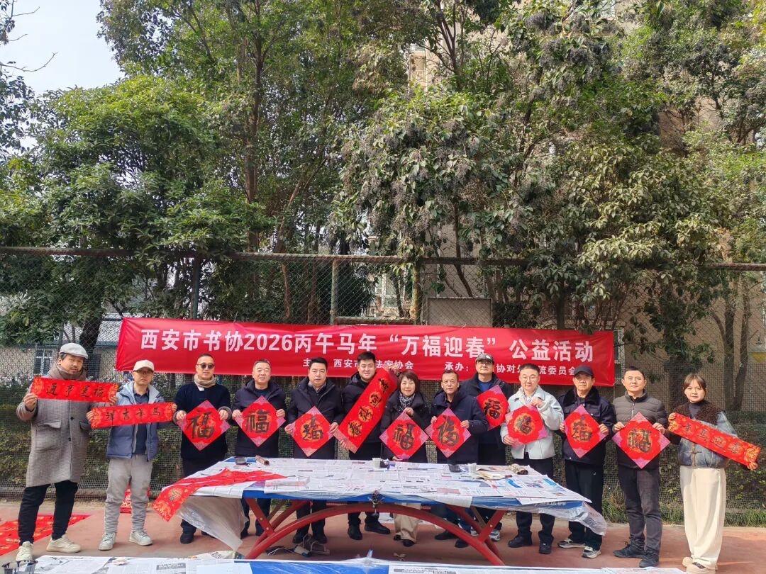 西安市书法家协会组织百余位书法家与书法工作者,走出书斋开展了一系列规模宏大的义务写春联送福活动。他们以手中饱蘸深情的毛笔为纽带,以数万副火红的春联和饱满的“福”字为载体,将新春的吉祥祝福与中华优秀传统文化的馨香,送至千家万户,绘就了一幅全城联动、温情流淌的新春文化画卷。