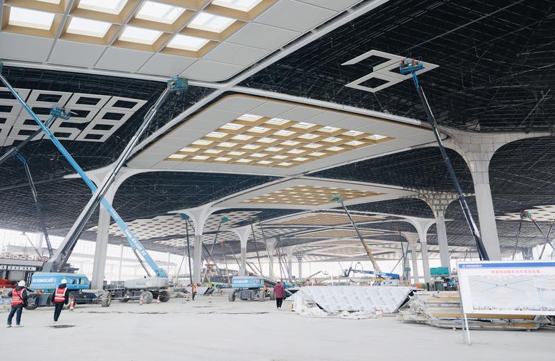 “春节期间我们不停工,将统筹各参建单位科学排班、交叉作业,加快推进光电玻璃幕墙安装、室内装饰装修等重点任务,以高标准施工推动工程高质量落地,为工程按期建成开通打下坚实基础。”西安铁路局西安站改扩建工程指挥部副指挥长赵伟说。