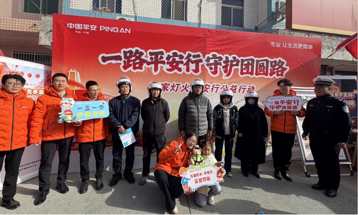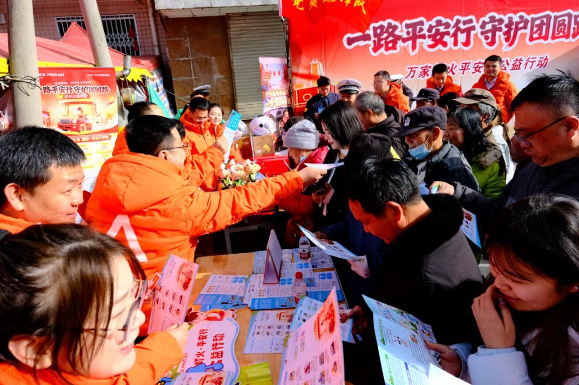 由平安产险陕西分公司与蓝田县公安局交通管理大队联合主办的“万家灯火平安行”公益行动走进焦岱大集,以“一路平安行 守护团圆路”为主题,将交通安全知识送到群众家门口,用实际行动守护万家团圆路。