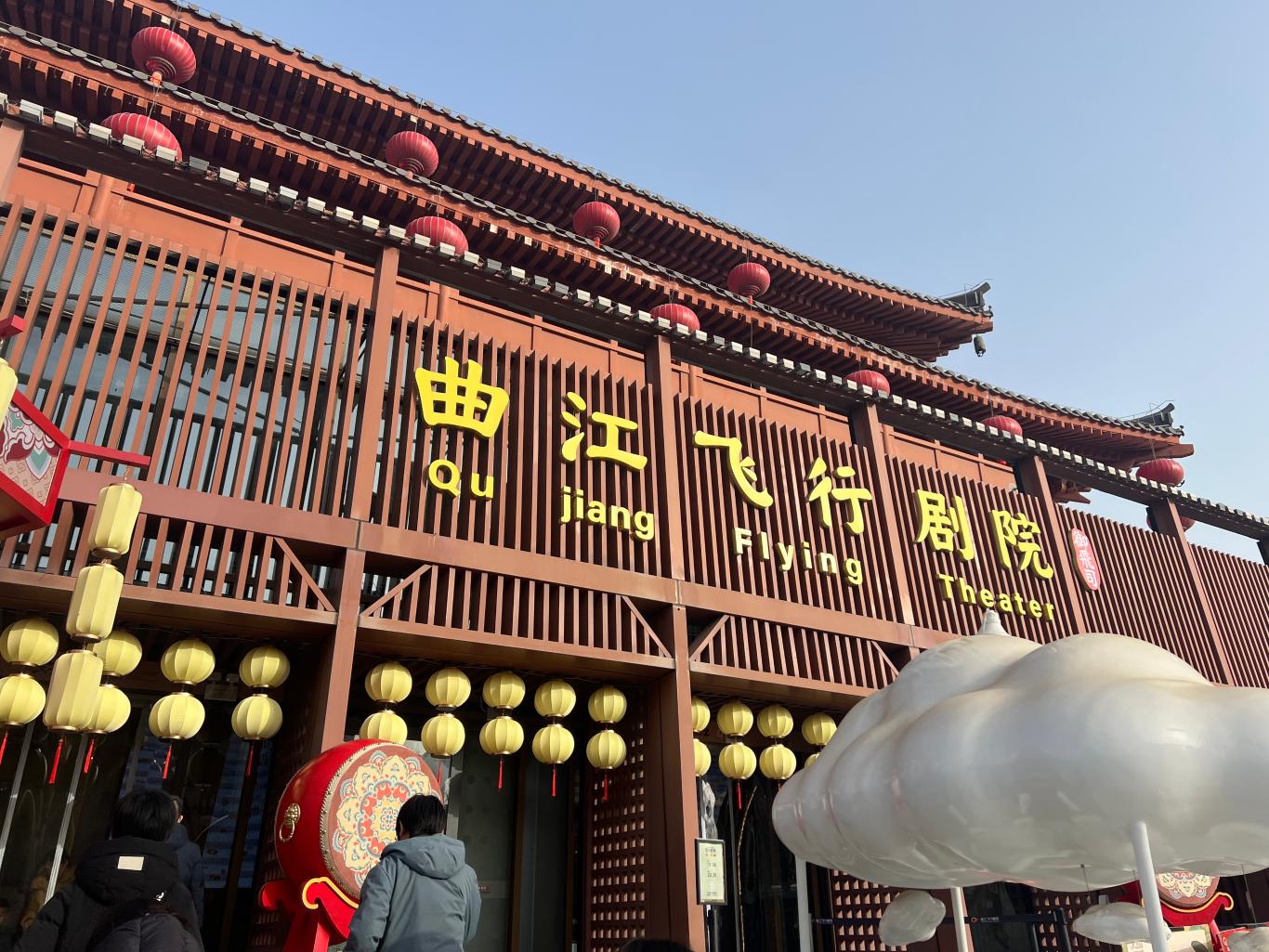 坐落于大唐不夜城的曲江飞行剧院,是全球首座唐诗主题飞行乐园,斥资亿元由国际顶尖团队打造。剧院配备沉浸式飞行设备,每小时接待游客近千人,运用180度球幕投影、全息影像等技术,打造《长安之上》《中国之上西安篇》两大剧目,带领观众飞越长安胜境与华夏山河。
