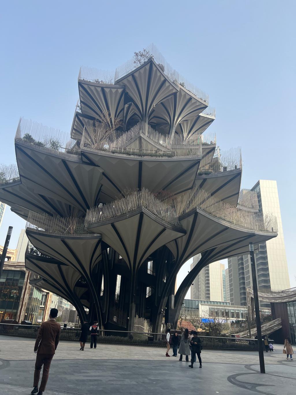 其标志性景观生命之树,由国际知名建筑师托马斯·赫斯维克设计,灵感源自终南山千年银杏,高57米,以异形钢结构打造60片仿银杏叶片,登顶可俯瞰城市风光,成为西安现象级文旅打卡地。