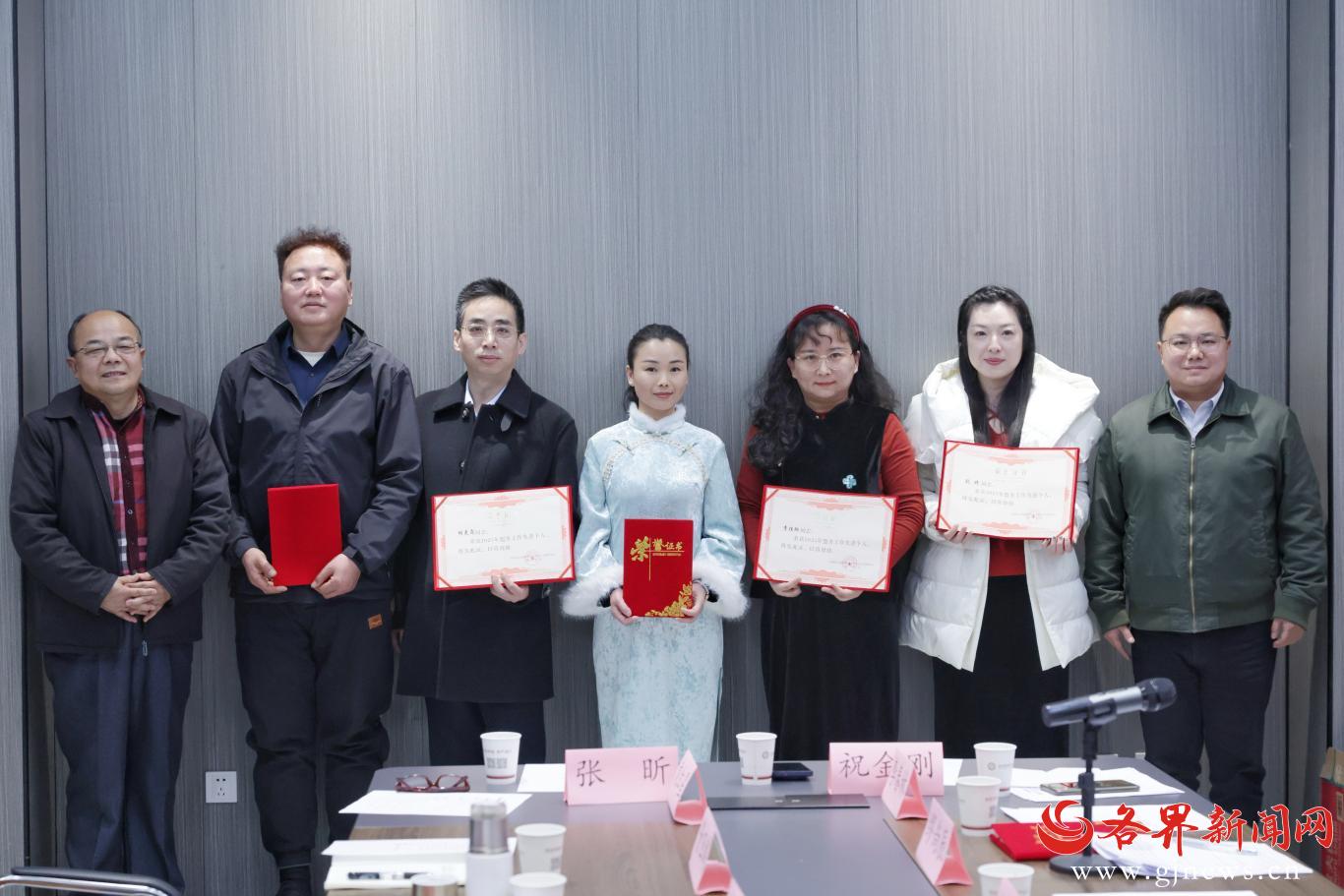 当日,文化总支原主委邱轩洛等近40位盟员参会。会议为贾小熊、徐飞、高波等盟省委表彰个人,及缪尚辰、李春林等文化总支表彰个人颁发荣誉证书。徐飞、石西龙、高转荣作为代表发言。会后举行了盟员书画交流活动。(文/刘姝 图/陈飞波 高若凡)
