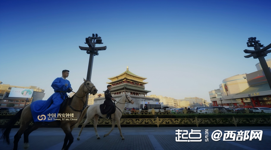 节目形式的创新同样令人耳目一新。人文微电影《丝路双弦》以“器”会友,讲述陕西秦腔板胡制作师与哈萨克库布孜工匠跨越千里的文化默契;《你可以慢点走》以穿越机视角带来大开大合的西安中轴线纵览,让电视塔的锋芒与钟楼的历史厚重感相互呼应;《鲜衣怒马向长安》中,两匹汗血宝马从钟楼走到大雁塔,从西安奥体中心走进城市楼宇,诠释“一马当先,马到成功”的主题。