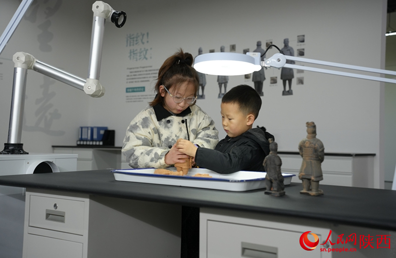 小朋友体验陶俑拼接的过程。人民网记者 邹星摄