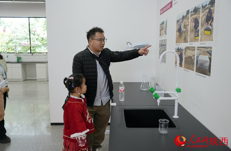 沿着展厅的动线前行,墙上展陈的文物保护工作照片和视频影像,引得不少观众驻足凝视。画面中,有工作人员在坑下保护遗迹的身影,有研究人员在实验室里用显微镜分析材料的模样,也有团队成员围坐桌前热烈讨论的场景。其中,夏寅办公室里放置的一台偏光显微镜引起了记者的注意。