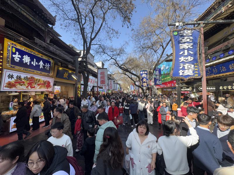 2月19日,农历大年初三,古城西安暖阳高照,年味正酣。西安北院门风情街人潮涌动、热闹非凡,这条镌刻着城市记忆及浓郁市井烟火的老街,成为新春假期最受市民游客青睐的“年味打卡地”。