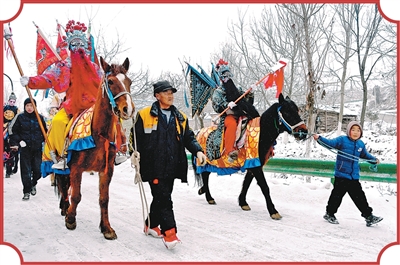 “在我们村,马社火的正日子是正月十四庙会。”田涛说,加上前一天预演、后一天县城巡演,通常连耍3天,男女老少喜气洋洋。