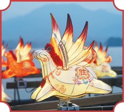 浙江杭州西湖的“马灯福气船”。龙 巍摄(影像中国)