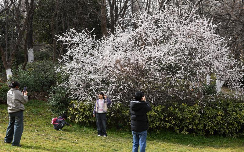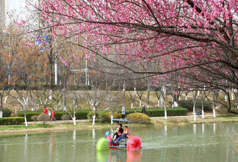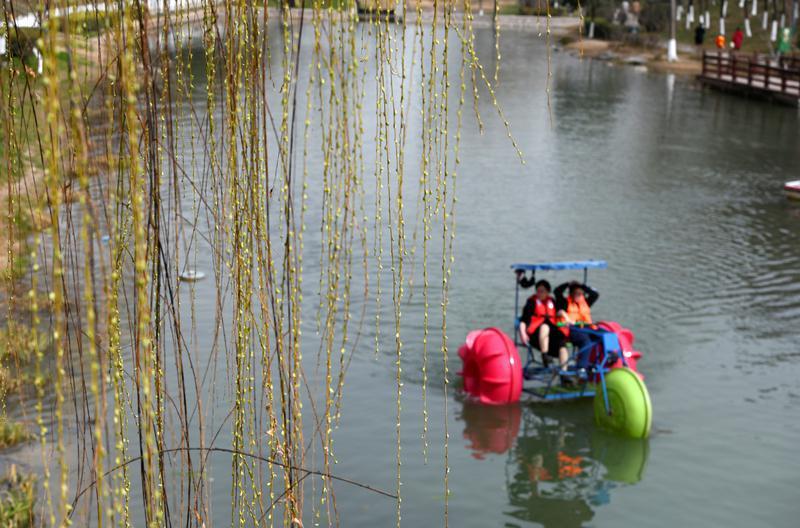 2月21日,桃花潭景区春意盎然,岸边繁花满枝,湖面游船点点。市民游客或泛舟湖上,或驻足赏花,在水光花色间尽享春日闲情,一派惬意悠然的景象。