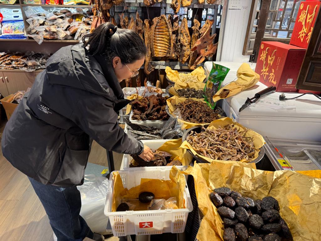 位于重庆城口的“城口好礼”店铺内,胥远燕正在整理土特产。新华社记者 李晓婷 摄