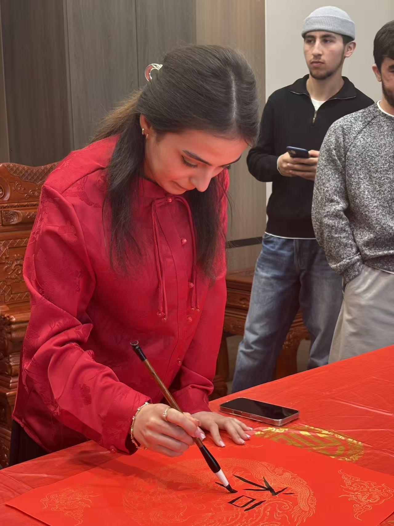 在西北大学担任办公室辅导员助理的古拉丽,是这群留学生中的“老西安”。2019年,她从土库曼斯坦来到西安,在西北大学学习俄语专业,毕业后选择留校工作。今年是她在中国度过的第七个春节。“我选择来中国,是因为我的父母对中国有着极高的好感。从小他们就告诉我,东方有一个伟大的邻居,那里有五千年的文明,有善良的人民。他们的言传身教,让我对这片土地充满了向往。”古拉丽说,七年的时光,让她从一个懵懂的留学生,成长为连接两国青年的桥梁。