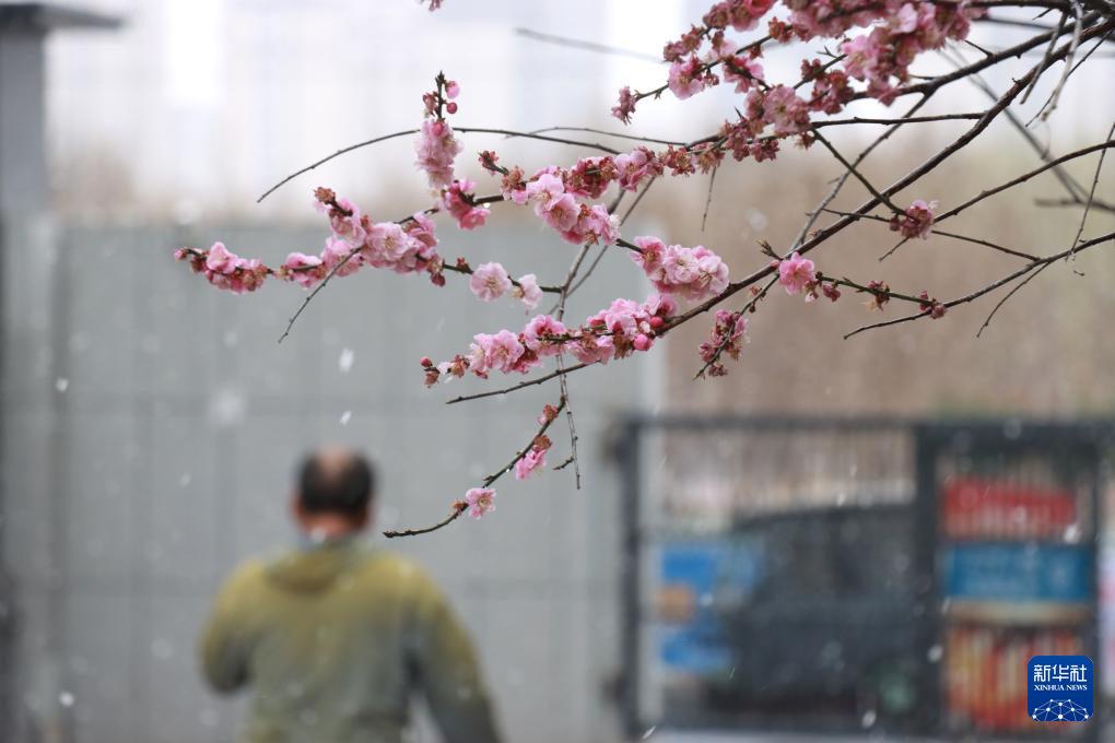 2月23日,在河南省安阳市内黄县街头,一名男子冒雪出行。
