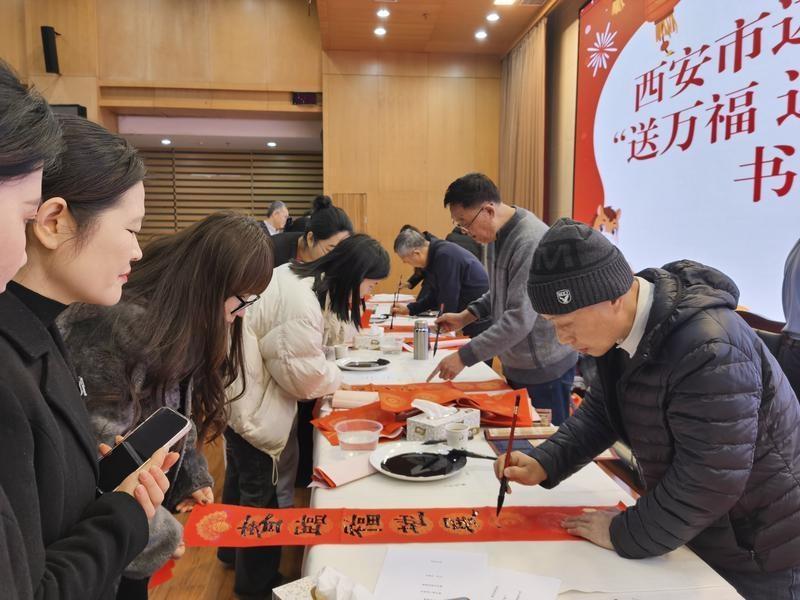 与“轻骑兵”同步行动的,还有市工人文化宫、边家村、土门、纺织城、小寨各工人文化宫组织的“送万福 进万家”书法公益活动。组织知名书法家、画家和非遗剪纸艺术家深入医院、学校、社区、派出所、部队干休所和企事业单位,特别聚焦外卖骑手、快递小哥等新就业形态劳动者,累计送出春联、“福”字及书画、剪纸作品两万余份。