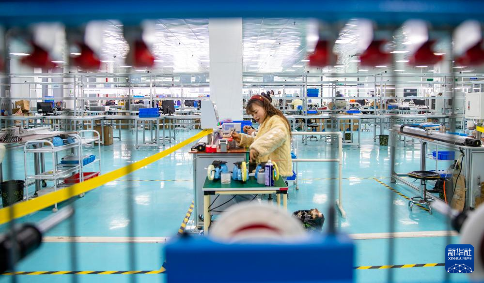 2月24日,在湖南省永州市道县高新技术产业开发区,工人在适配器生产企业流水线上工作。