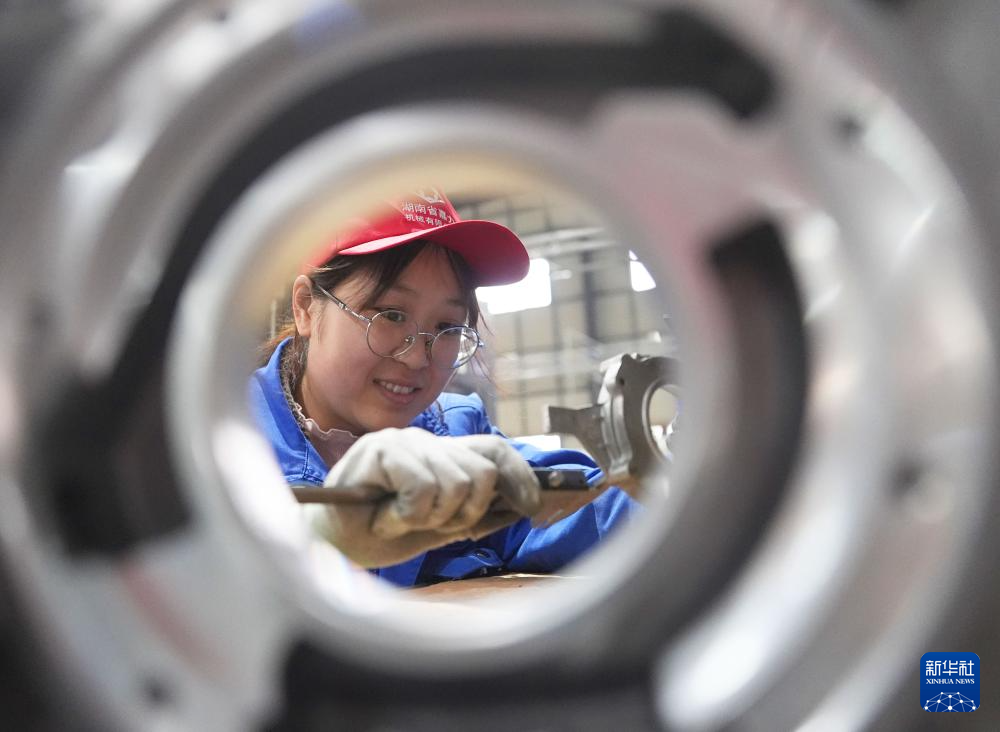 2月24日,在湖南省衡山县衡山高新技术产业开发区,湖南嘉力机械有限公司员工在生产线上工作。