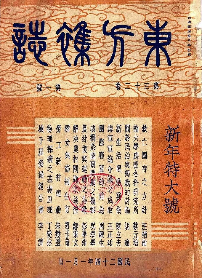 回过头来看,在《东方杂志》这一期足足是平时期刊容量四倍以上的“新年特大号”中,胡适的文章除了与当局诸要员纷纷展望新年、大唱高调格格不入之外,还是有不少新老朋友的文章观点是与之有默契、与之交相呼应的。可以说,迫切希望政府当局改善民生、改进民主的呼声,在1935年新年元旦之际此起彼伏。