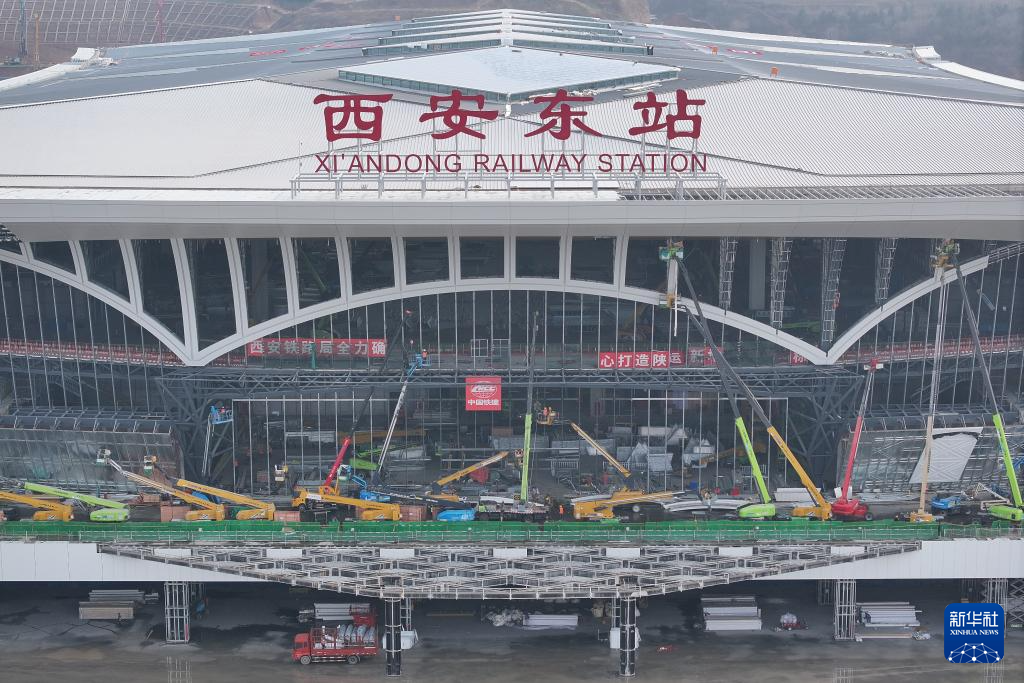 记者从中国铁路西安局集团有限公司了解到,特大型铁路综合交通枢纽西安东站春节期间持续施工,目前已完成总建设进度的90%。车站室内装修、配套设施安装等工作全速开展,轨道工程进入全面精调阶段,站场线路设备正进行集中整治,站场及动车所已启动静态验收,为后续建成开通、高质量投用运营奠定坚实基础。