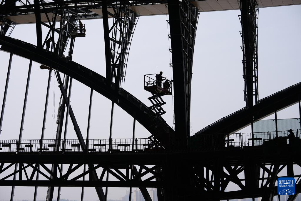 2月26日,工人在西安东站外立面处施工。