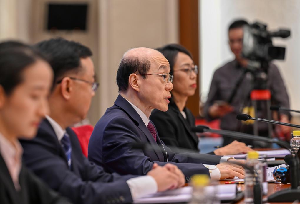 3月3日,全国政协十四届四次会议新闻发布会在北京人民大会堂举行。大会新闻发言人刘结一向中外媒体介绍本次大会有关情况并回答记者提问。新华社记者 王曦 摄