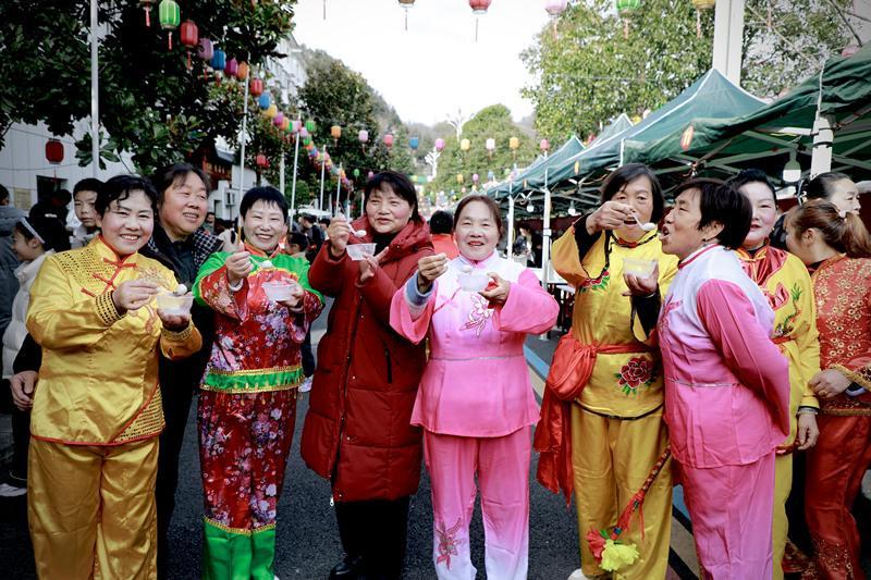 不远处的美食街上,炸土豆、煮玉米、烤肉串的摊位前香气四溢,生意红火。“千人免费吃汤圆”的摊位上更是排着长队。刚从外地返乡回来的李梅边吃边用手机拍照:“只有老家才有这个年味,每年回来都有新变化!”