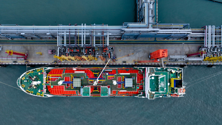 产自远景科技集团的绿氨在江苏连云港徐圩港口进行装载。新华社发