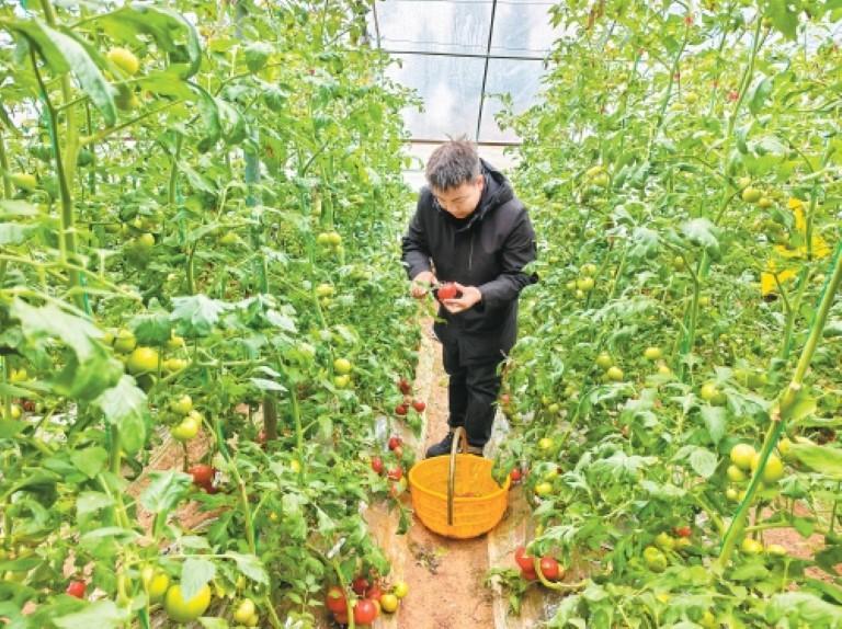 “咔嚓”一声,翠绿的西红柿藤蔓被轻轻折断,红彤彤的果实带着新鲜的露水落入采样袋中。3月8日上午,在何村的一片西红柿大棚里,一个身影正穿梭在植株之间,动作娴熟地摘下几颗即将成熟的西红柿,小心翼翼地放入筐中,他就是村里的农产品质量安全协管员冯磊。