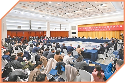 3月6日,十四届全国人大四次会议重庆代表团开放团组会议现场。