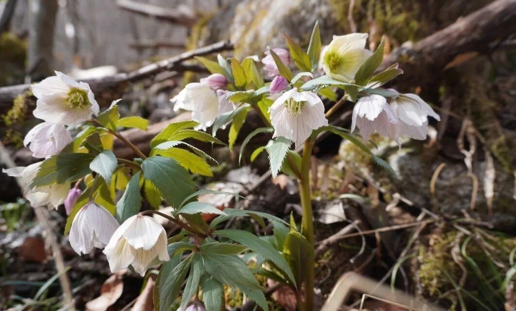 铁筷子,毛茛科铁筷子属多年生草本铁筷子是保护区最耐寒坚韧的早春花卉之一。气温徘徊零下时,多数植物仍蜷缩休眠,它已顶雪迎寒开放,钟形花朵低垂轻颤,色彩从纯白、浅粉渐变至淡紫,萼片基部带细密斑纹。它于林下、岩边阴湿处默默吐芳,预告着春天的临近。