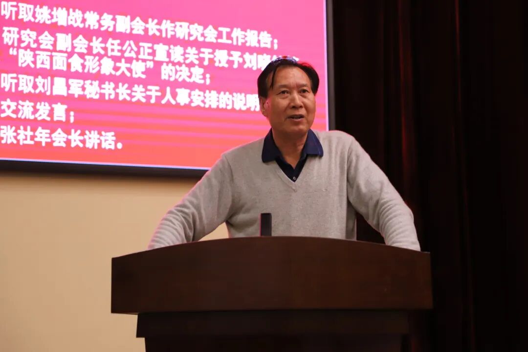 会议听取了研究会年度工作报告,人事安排说明,授予刘晓钟等18名同志为“陕西面食形象大使”。