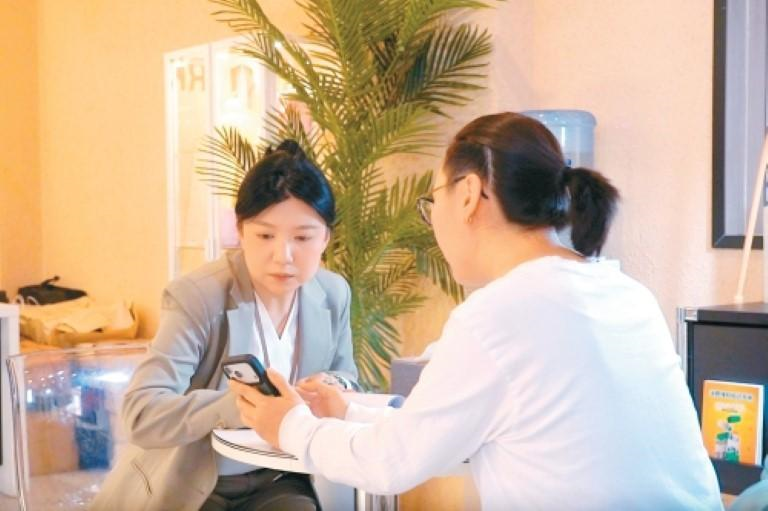 西安老城根G park商场的消费维权服务站工作人员高效调解消费纠纷。(奚淼 摄)
