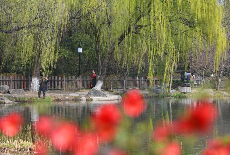 太液池畔花红柳绿。