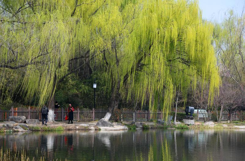 柳树吐绿。