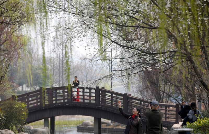 游人赏春。