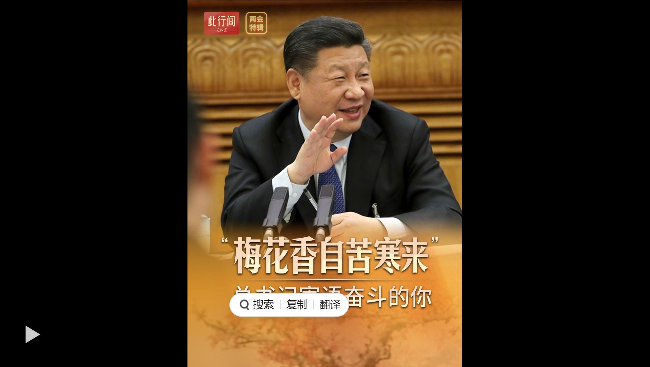 人民大会堂内有一幅巨型梅花图。它立于代表委员参加全国两会的必经路上,见证了他们履职尽责的历程。全国人大代表米雪梅行经此处,总会想起习近平总书记“梅花香自苦寒来”的寄语。这句话是对代表委员的殷切关怀,也是对实干人生的生动诠释。