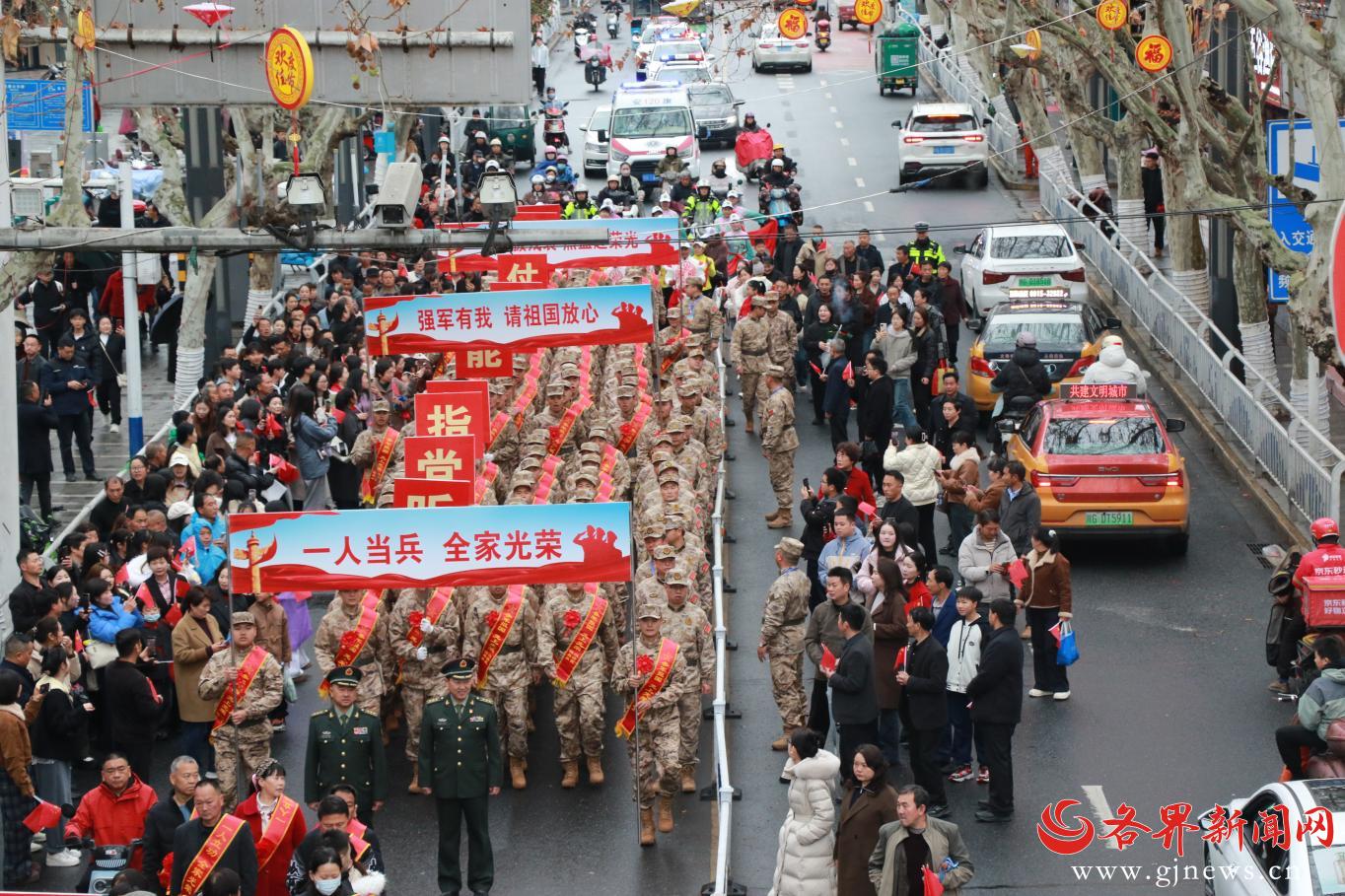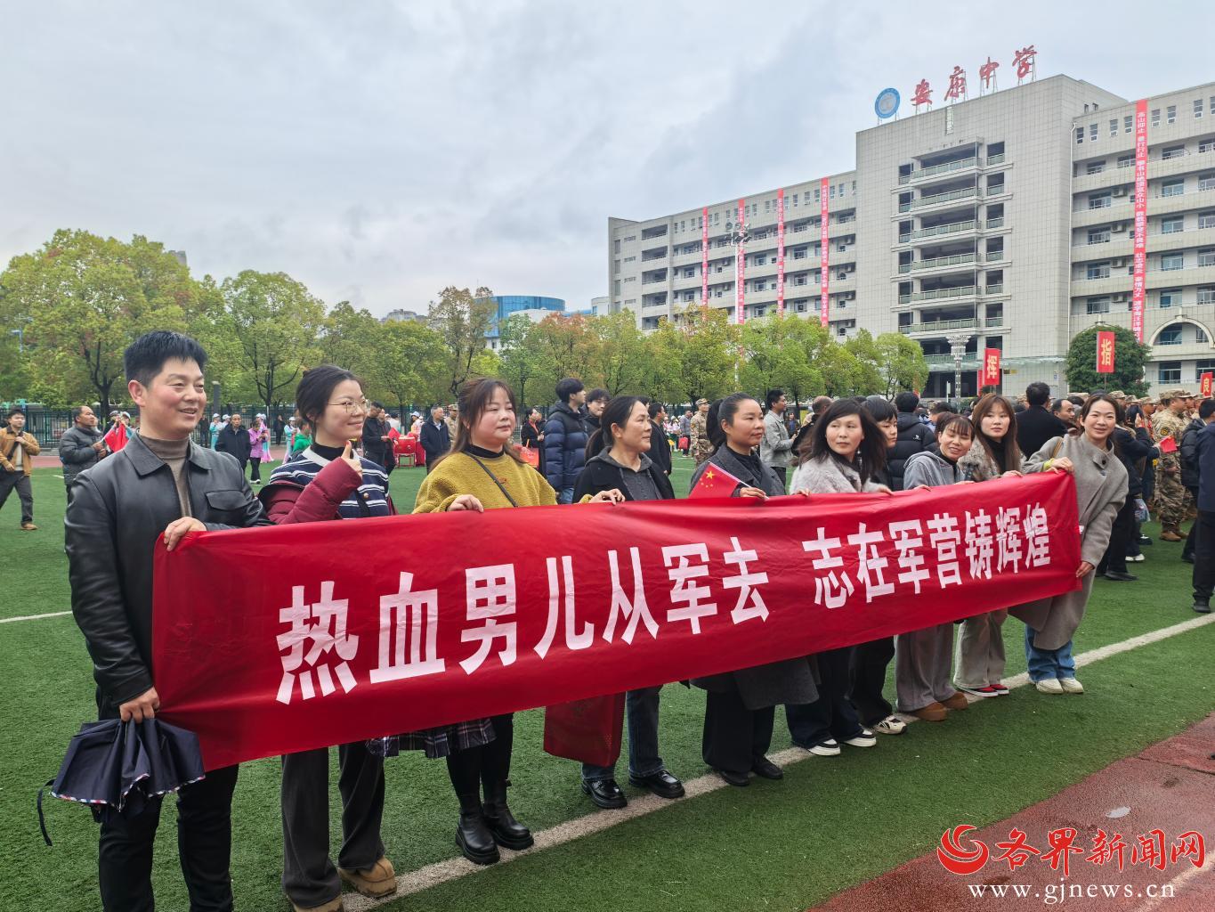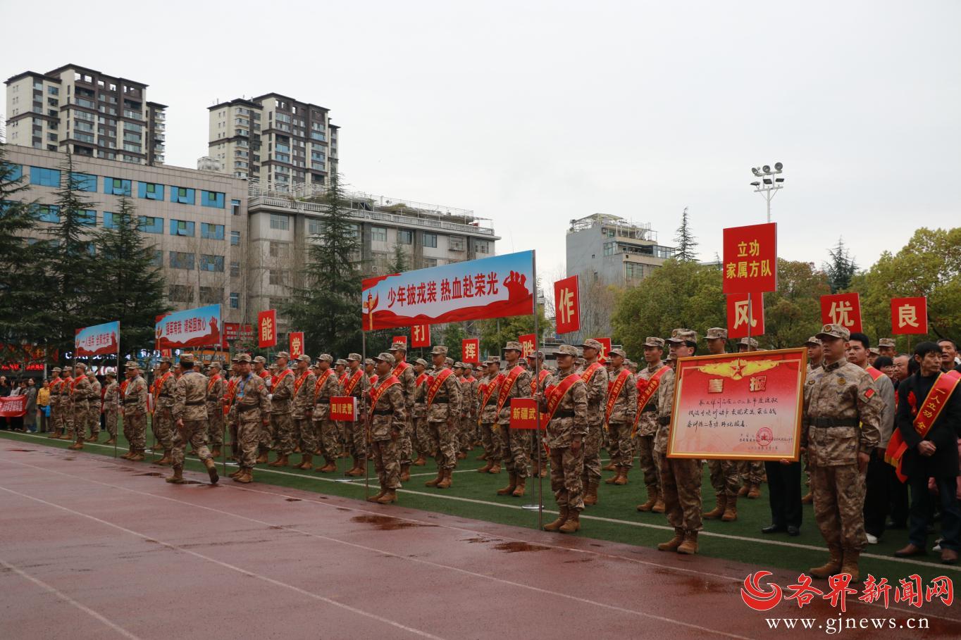 现场军歌嘹亮、红旗招展,胸戴红花、身披绶带的新兵们精神抖擞、英姿勃发,在亲人的嘱托、家乡的祝福中,即将告别故土、奔赴军营,用青春热血扛起保家卫国的神圣使命,以赤子之心书写新时代青年的责任与担当。