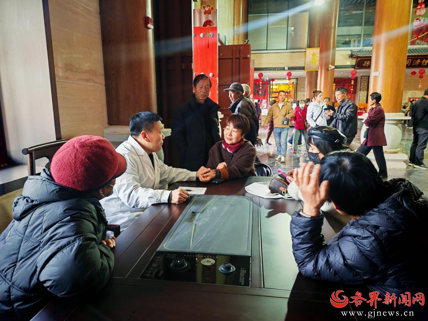 今年庙会围绕“养生”与“文化体验”两大核心展开。在养生板块,药王山化身健康课堂——多名省市名中医现场坐诊,为游客提供免费健康咨询;药食同源古法炮制技艺展示区前围满观众,大家认真观看药材切片、蒸炒等传统工序;药王养生功、太极健身操等展演引来不少人跟随练习。