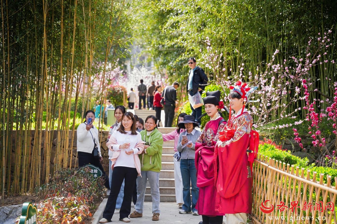 据悉,本次“丹凤花开等您来”系列宣传推介活动将持续至4月中旬,期间将推出多项特色活动,丰富游客体验。启动仪式当天,桃花谷景区同步推出二十余项情景体验项目,成为现场嘉宾与游客沉浸式游览的核心亮点。与此同时,丹凤红酒品鉴区、非遗泥塑展示区、桃花酒酿茶宴体验区同步对外开放,古镇水街的美食美酒体验区与景区内的乡村好品集市集中展销非遗小吃、本地农特产品及丹凤葡萄酒,让现场嘉宾与游客在感受仪式氛围的同时,一站式领略丹凤的自然之美、文化之韵与物产之丰。