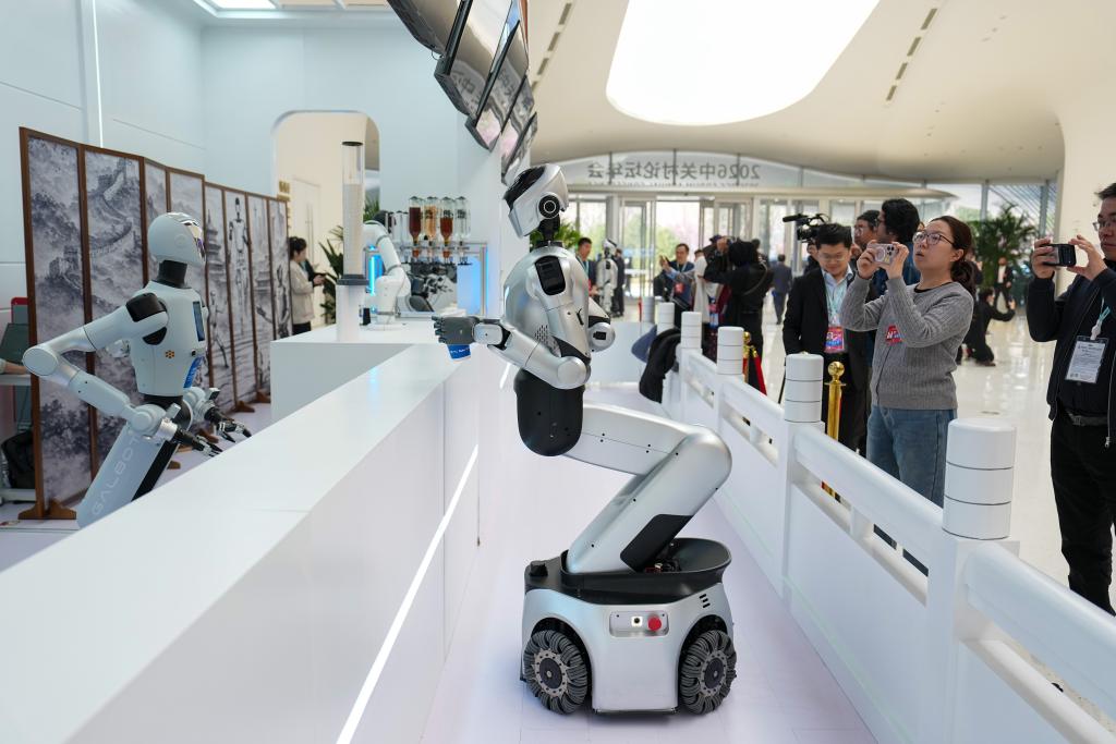 嘉宾在参观机器人餐吧。新华社记者鞠焕宗 摄