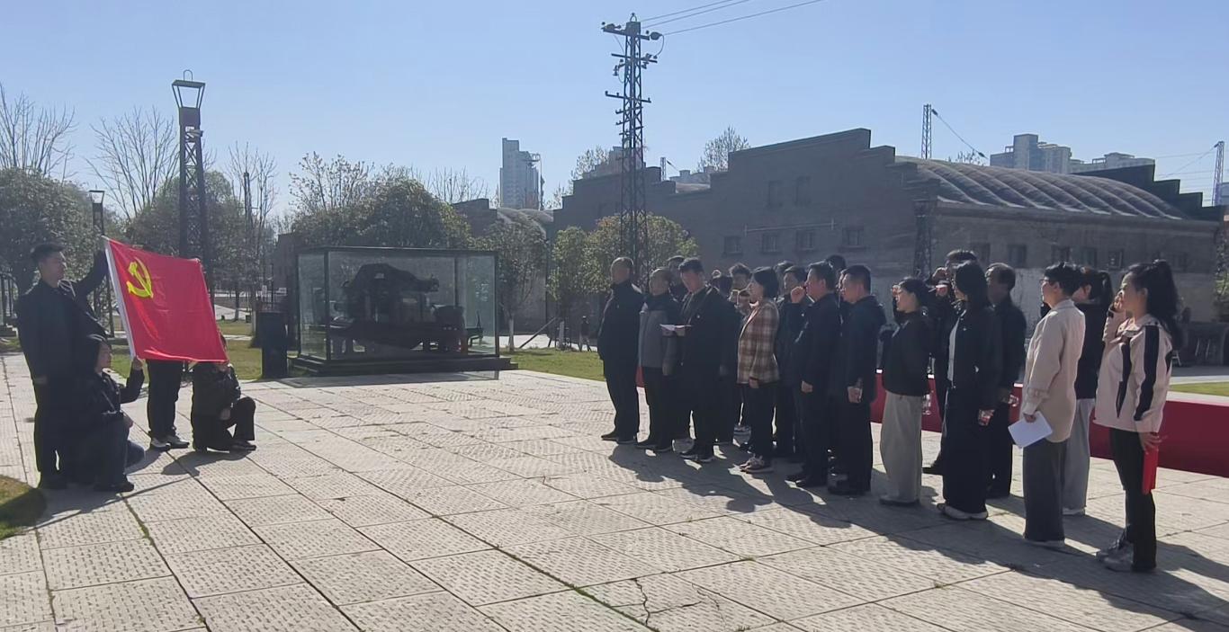 活动伊始,全体党员干部在申新办公楼旧址前集结,面向鲜红党旗肃立,庄严举起右拳重温入党誓词,铿锵有力的誓言回荡在工业遗址间,为整场活动奠定了庄重深刻的基调。