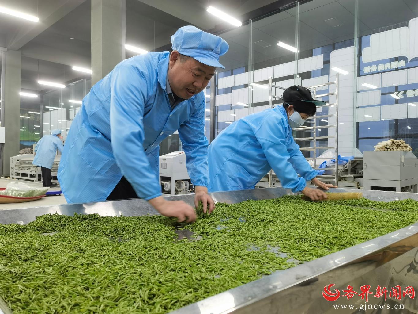 4月1日,在商洛市商南县富水镇油坊岭村秦岭南坡茶业有限公司的加工车间,茶技师正在有条不紊地忙碌着,从摊放、杀青到揉捻、干燥,每一道工序都精益求精,力求制作出高品质的茶叶。