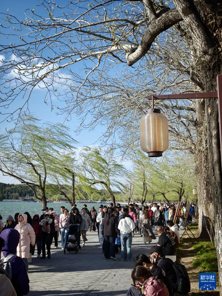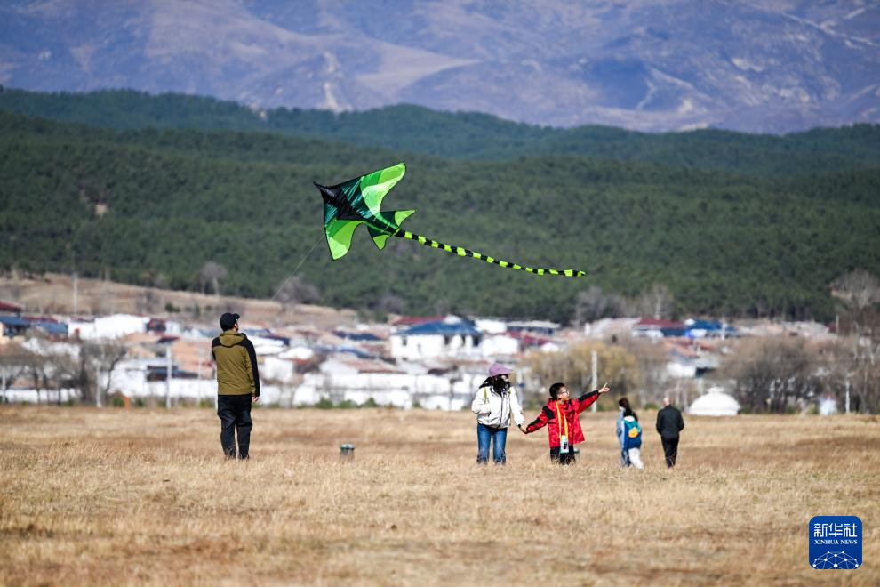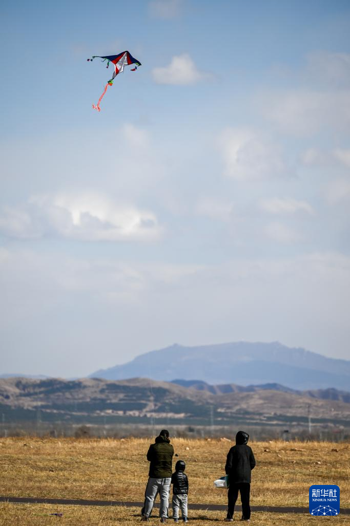 4月5日,人们在内蒙古呼和浩特敕勒川草原放风筝。