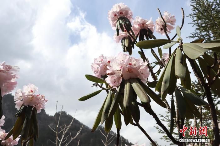 4月5日,陕西商洛,位于秦岭腹地的木王山景区内,高山杜鹃盛放。起伏的山峦被姹紫嫣红的花海覆盖。该地杜鹃花花带分布面积达2万余亩,拥有秦岭高山杜鹃、秀雅杜鹃、满山红杜鹃等20余个品种。清明时节,吸引了不少游客前来赏花踏青。图为秦岭高山杜鹃迎来最佳观赏期。中新社记者 李一璠 摄