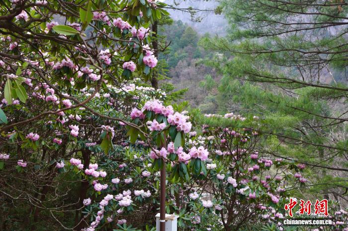 4月5日,陕西商洛,位于秦岭腹地的木王山景区内,高山杜鹃盛放。起伏的山峦被姹紫嫣红的花海覆盖。该地杜鹃花花带分布面积达2万余亩,拥有秦岭高山杜鹃、秀雅杜鹃、满山红杜鹃等20余个品种。清明时节,吸引了不少游客前来赏花踏青。图为秦岭高山杜鹃盛放,美不胜收。中新社记者 李一璠 摄