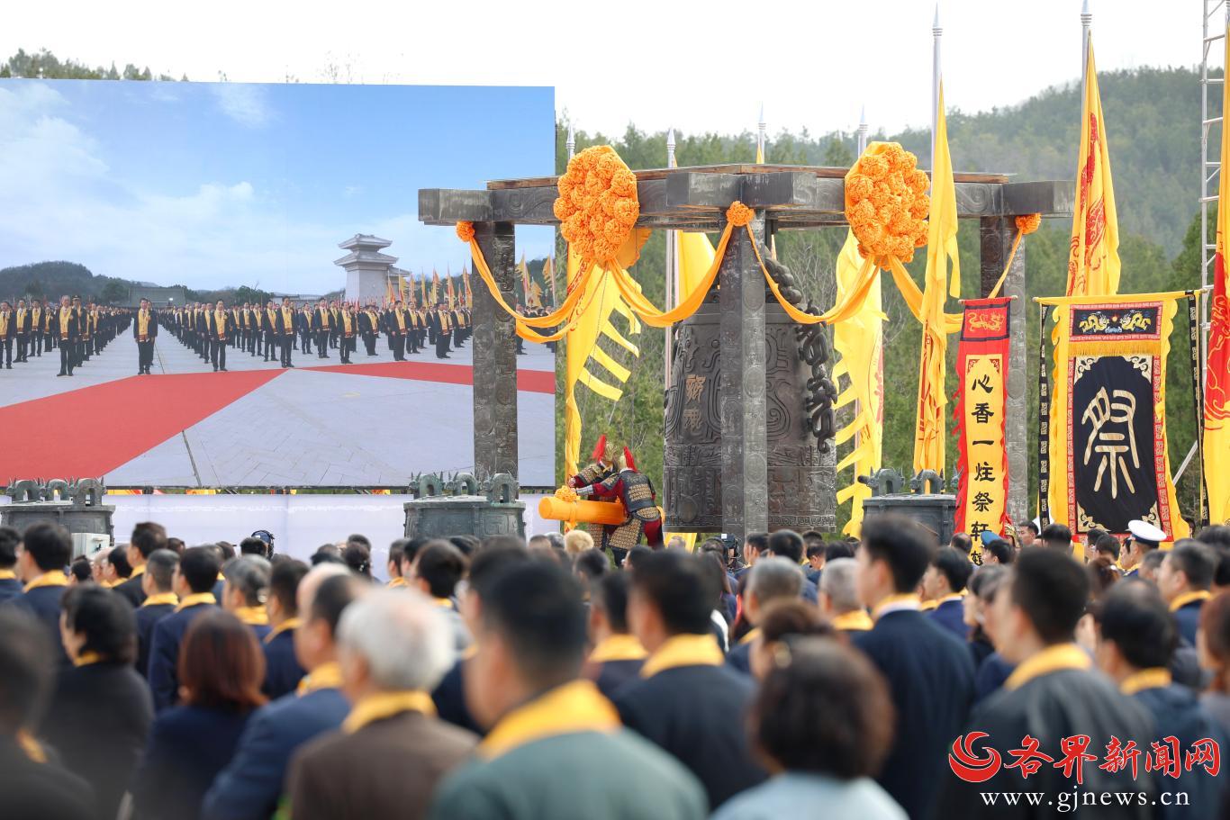 山门内外,仪仗肃立。上午9时19分,典前序礼启动,执事宣诵《典前祝文》,古琴声起,《神人畅》缓缓奏响,来自全国部分省、自治区、直辖市,香港、澳门特别行政区和台湾地区,以及海外的参祭嘉宾,在仪仗队的引领下,沿轩辕桥拾级而上。